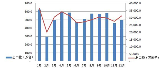 1.出口:2014年出口整车6265.3万辆,同比增长10.0%;出口额为35.4亿美元,同比增长11.7%。见图2、图3所示。