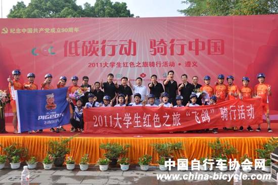 担任此次骑行活动遵义段的主力骑手是来自遵义医学院、贵州航天职业技术学院和遵义师范学院的20名大学生,由当地车友自发组织的50名骑友跟骑,共同构成遵义古城一道亮丽的风景线。此次遵义段骑行活动的承办单位天津市飞鸽集团有限公司向大学生骑行队员提供专用车辆,全力支持本次骑行活动。
