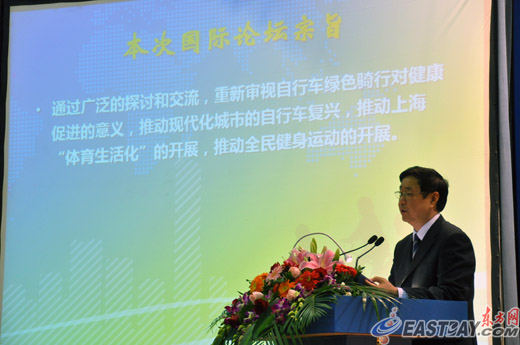 上海市体育局副局长李伟听先生率先作了名为“我骑车、我运动、我健康、我快乐”的主题报告。李伟听说,“当代人的生活方式发生了很大的变化,包括长时间久坐,体力活的减少,体育锻炼缺乏,不合理的饮食结构等都导致了许多疾病的产生。因此,建立健康的生活方式,减少久坐,多一点体育锻炼,无疑是防治‘城市文明病’的最佳良方。而骑自行车是值得向上海市民推荐的一项体育生活化的健康锻炼活动。”