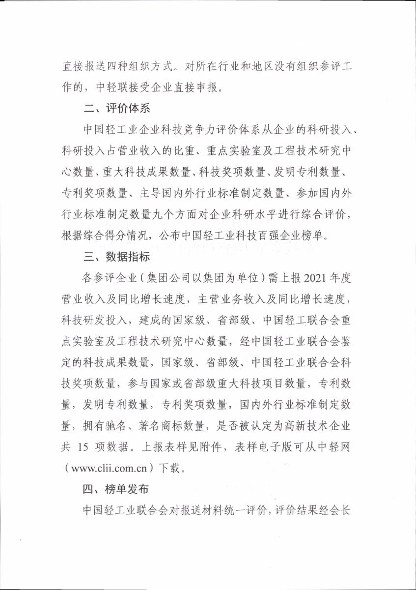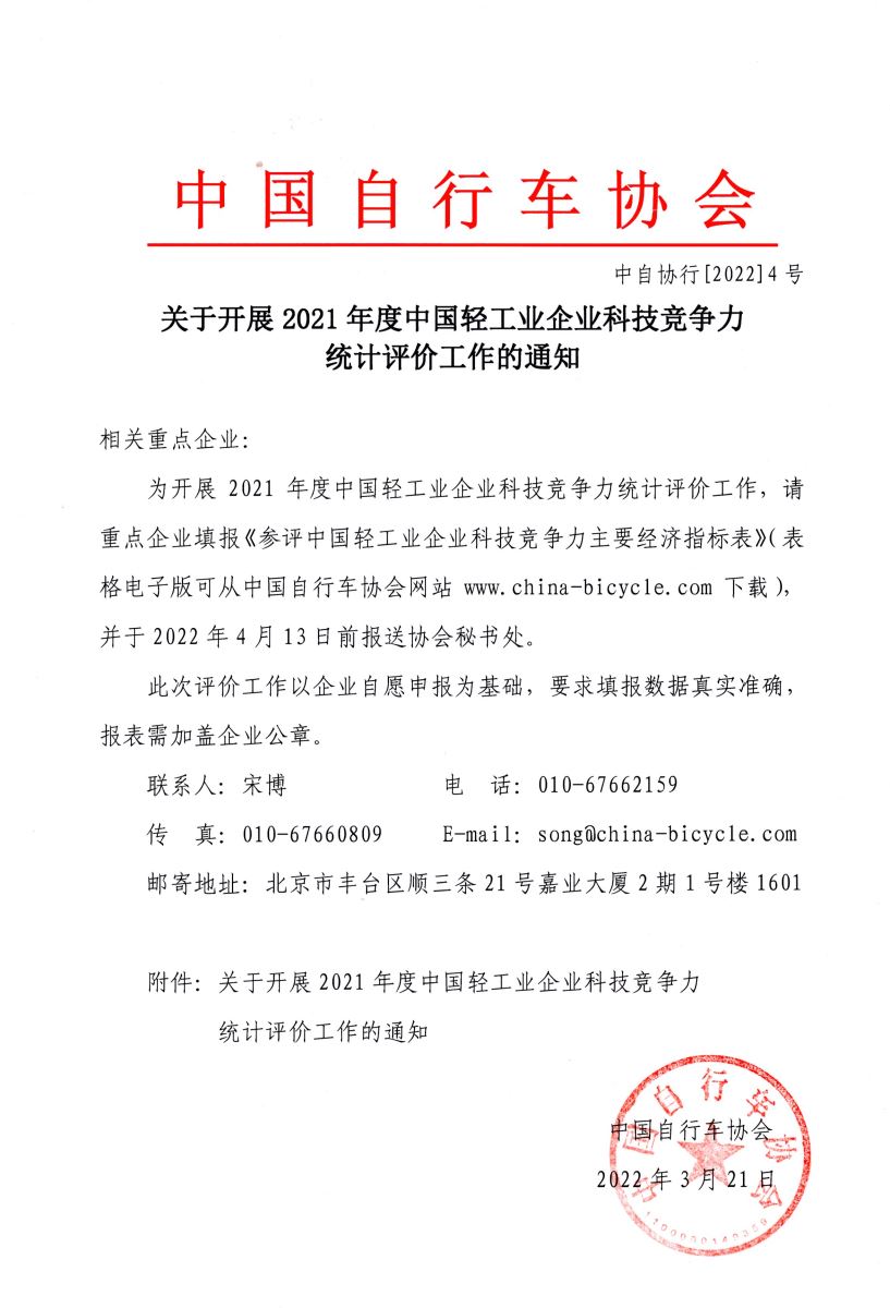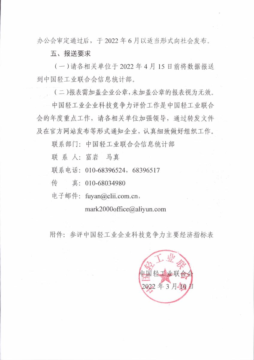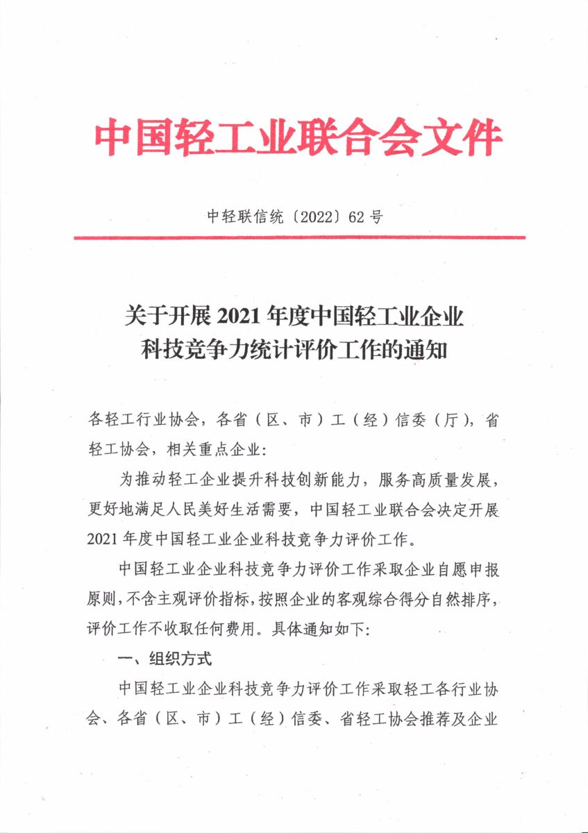 关于开展2021年度中国轻工业企业科技竞争力统计评价工作的通知