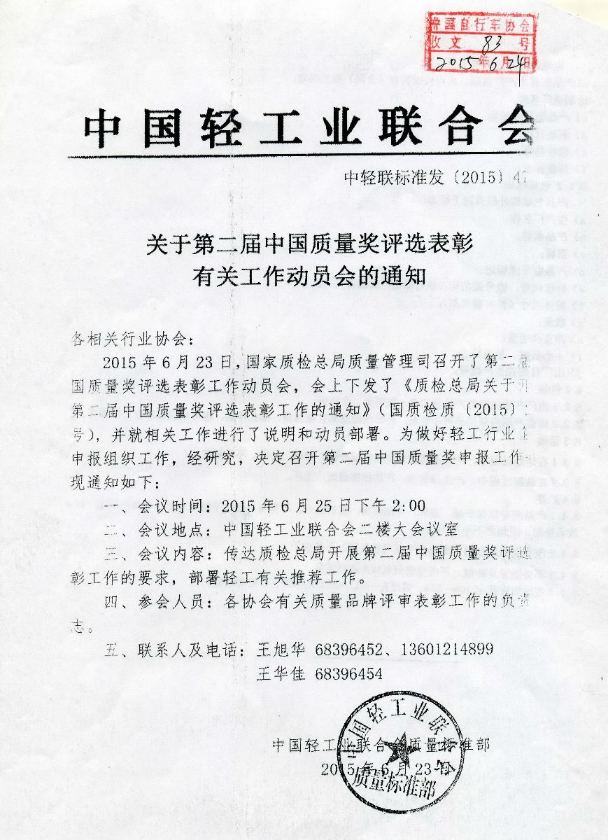 关于组织第二届中国质量奖评选表彰工作的通知
