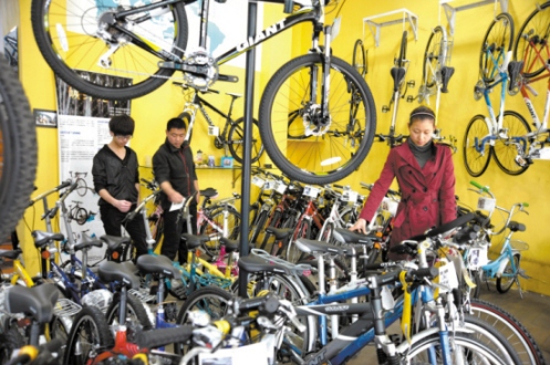 据该店老板介绍,如今,前来购买自行车的多为3040岁的市民,以骑自行车健身为目的。随着油价上涨,也有部分市民选择购买自行车代替上下班的交通工具。