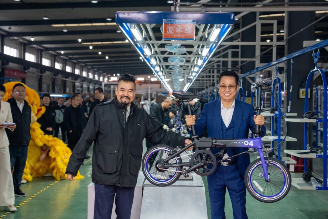 现场,首批新能源电动车顺利下线,车身流畅的设计与智能化配置,展现出“制造 + 创新”融合的鲜明特色—— 金轮集团 38 年来积淀的全球化制造实力与供应链体系,叠加大行集团在折叠车领域的核心专利技术与全球品牌影响力,形成了优势互补的合作格局,为行业探索“1+1>2”的发展模式提供了鲜活样本。