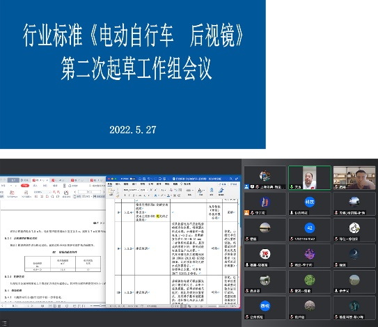 全国自行车标准化技术委员会组织的行业标准《自行车电镀技术条件》《自行车 辐条和条母》《电动自行车 后视镜》起草工作组第二次会议分别于2022年5月25日、26日和27日以视频会议的形式顺利召开。