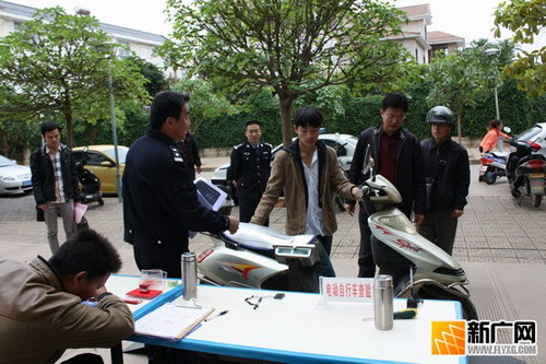 据悉,从今年4月,《云南省电动自行车管理规定》开始实施,红河州交管部门结合各地实际制订了切实可行的管理登记办法,红河州交警在13个县市交警大队车管所设置电动自行车登记服务点,购买配置电脑、打印机、称重仪、高清拍摄仪、照相机、塑封机、二代身份证阅读器等工作设备;并在派出所、乡镇交警中队设置电动自行车登记服务点,延伸服务窗口,方便群众就近办理电动自行车登记上牌;同时依托车管服务站,专网与公安网连接,设置电动自行车登记服务站,推行电动自行车带牌销售,实现一站式服务;在学校设立临时服务点,做好学校师生的电动自行车登记上牌工作;在社区等电动自行车集中的地方设立流动服务点,使用3G无线网络提供上门登记服务。