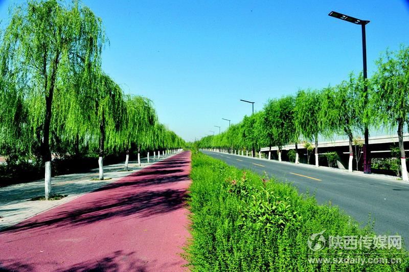 这里正是此次入选我国第三批城市步行和自行车交通系统示范项目的秦汉新城渭河生态景观带步行和自行车交通系统。三年前,这里还是一片垃圾成堆、污水横流的烂河滩,自2011年起,秦汉新城严格按照渭河综合治理的要求,加强堤防建设与河道疏浚:铺设堤顶道路18.65公里,清理滩面315平方千米,新建、复建雁翅坝138座,保质保量完成了目标任务,还区域群众一个安全的生活居住圈;同时利用较宽滩面,修建3个运动休闲公园和1个湿地公园,并在大堤外侧和兰池大道之间,修建微地形,进行绿化美化,修建休闲娱乐广场,营造秦汉新城草绿林茂、空气清新的优美人居环境。