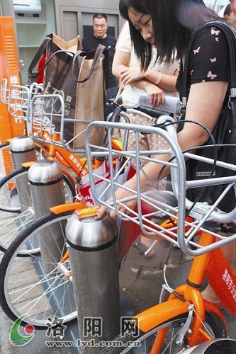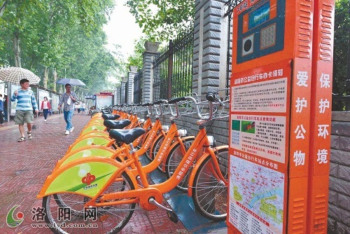 5月25日洛阳市1000辆公益自行车正式投入使用 来源:洛阳网 作者:连漪、杜武、 董华武/文,杜卿/图 发布时间:2013-05-27 12:06 5月25日,让众多洛阳市民千呼万唤的1000辆公益自行车走出“深闺”,正式投入使用,同时相关站点开始接受市民申请办卡。 据了解,目前,洛阳市共设有35个公益自行车站点,其中30个站点能办理借车卡,有5个站点因为没有空地设立工作亭而无法办卡,它们分别是:河南科技大学西苑校区站点、寨南路兴隆花园站点、明堂天堂站点、定鼎路金泰成灯饰广场站点、上阳路九都路路口站点。 点击进入洛阳网(共有4张图片)原文 摘编:何觉林; 摘编日期:2013年5月27日
