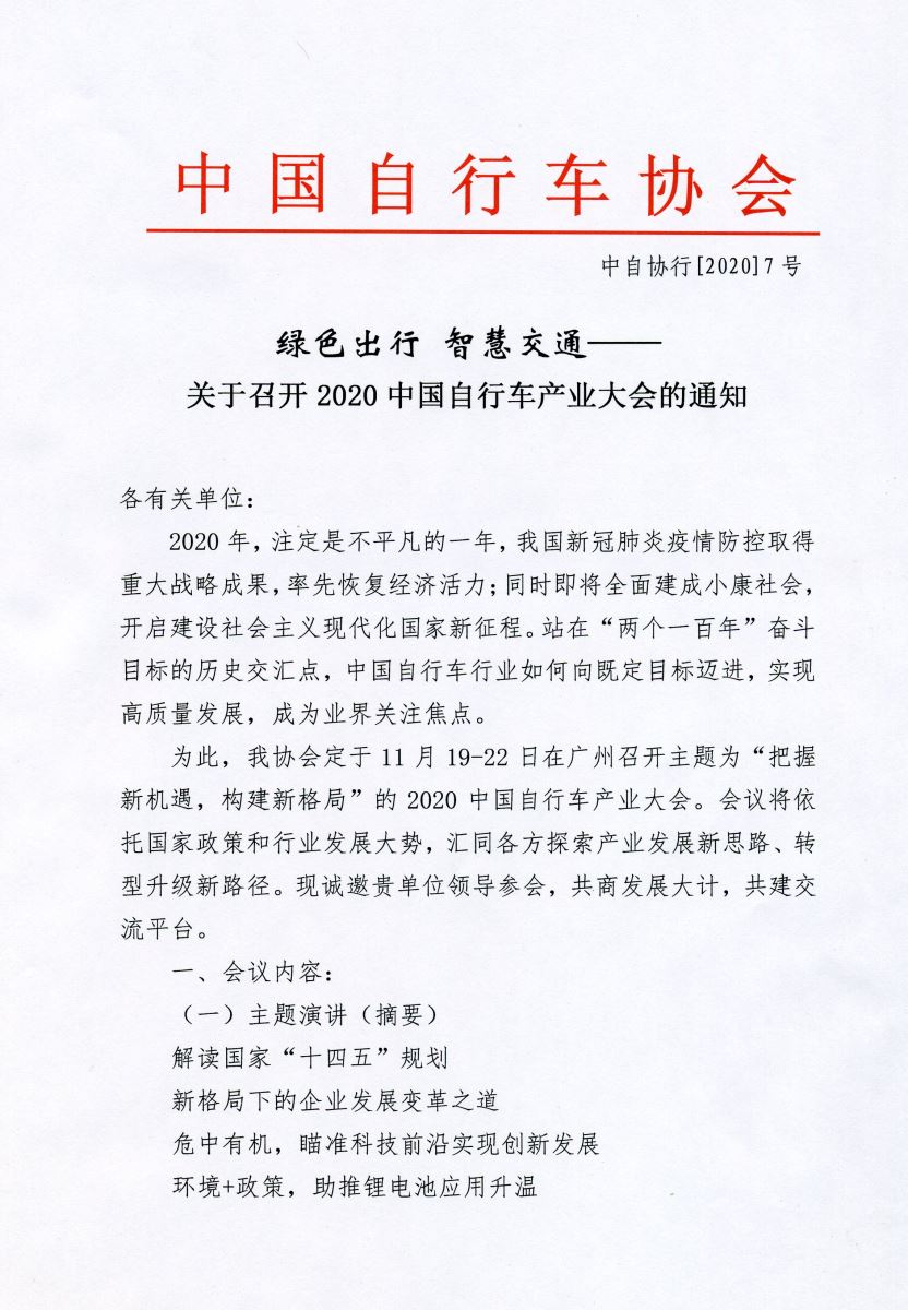 绿色出行 智慧交通—— 关于召开2020中国自行车产业大会的通知